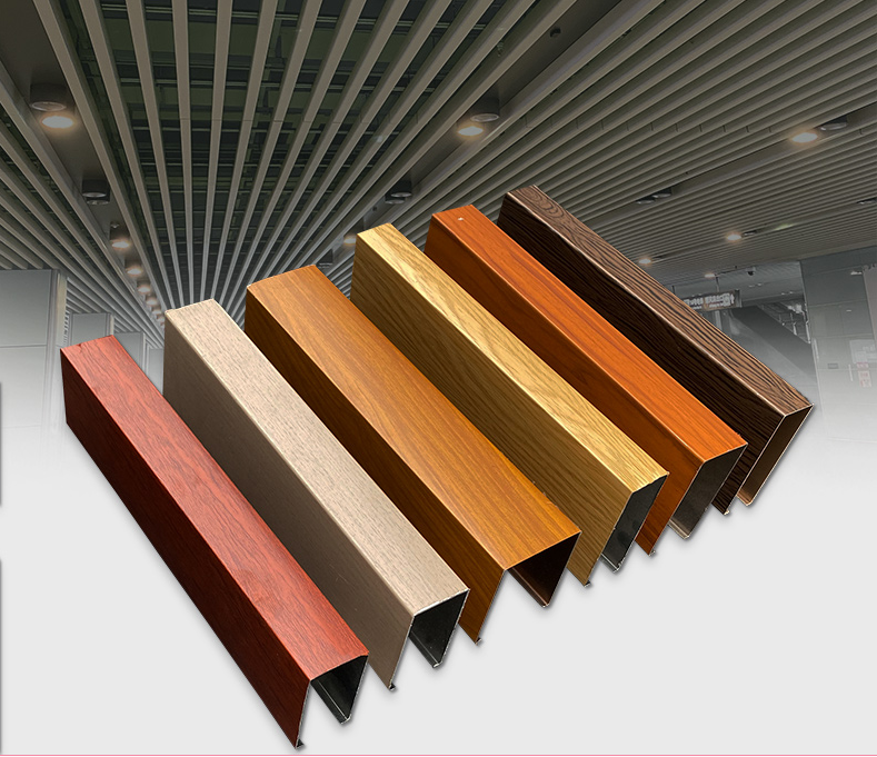 廣州臻禹木紋鋁方通道適用于人群密集的公共場所,便于空氣流通。在散熱的同時,它可以均勻地分布光線,使整個空間寬闊明亮。